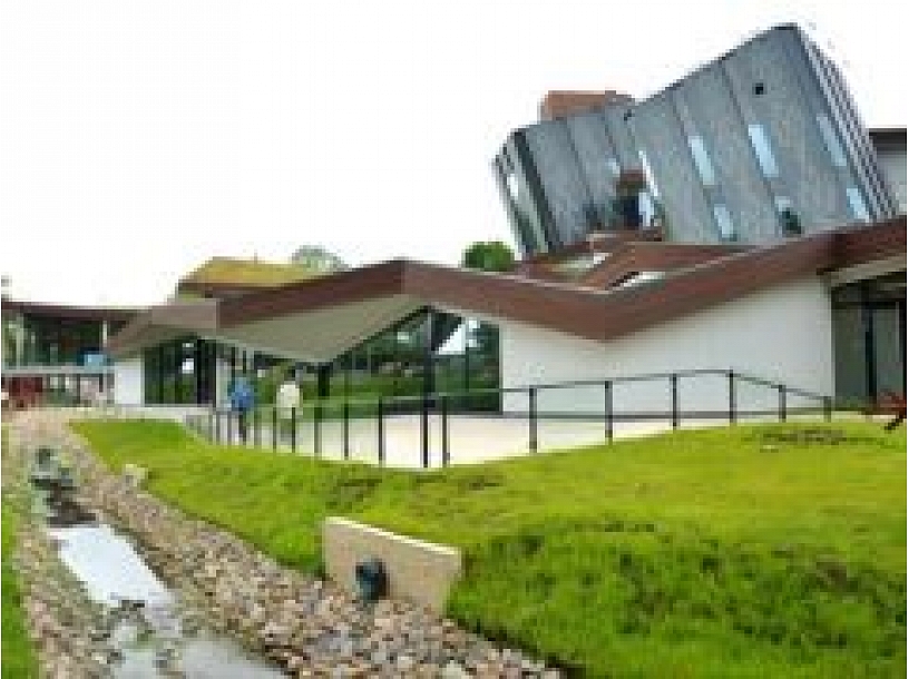 Radošo pakalpojumu centrs arī no iekšpuses izskatās tikpat interesanti kā no ārpuses. Drosmīgi dizaineru, krāsu risinājumi, oriģināla apgaismojuma sistēma, neparastas lustras aktu zālē – tas viss jāredz klātienē. Arī bērnu rotaļu laukums ar dažāda izmēra zīmuļiem un zirgu iederas kopējā dizainā.